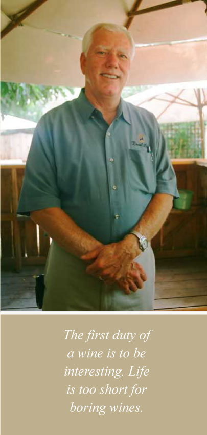 Today he consults for a select clientele crafting wines of passion and finesse from varietals ranging from Burgundian to Italian together with all the major Bordeaux varieties. Life is good but the wine business is also extremely competitive and challenging. Dan likes to joke that when he goes to Las Vegas he doesn’t gamble. Why? “I don’t need to — I’m in the wine business!” Yet, with over 30 years in the business, at nearly 30 years in the business, he’s still loving it, still going strong, still optimistic. “The world would be a better place if more people drank wine!”